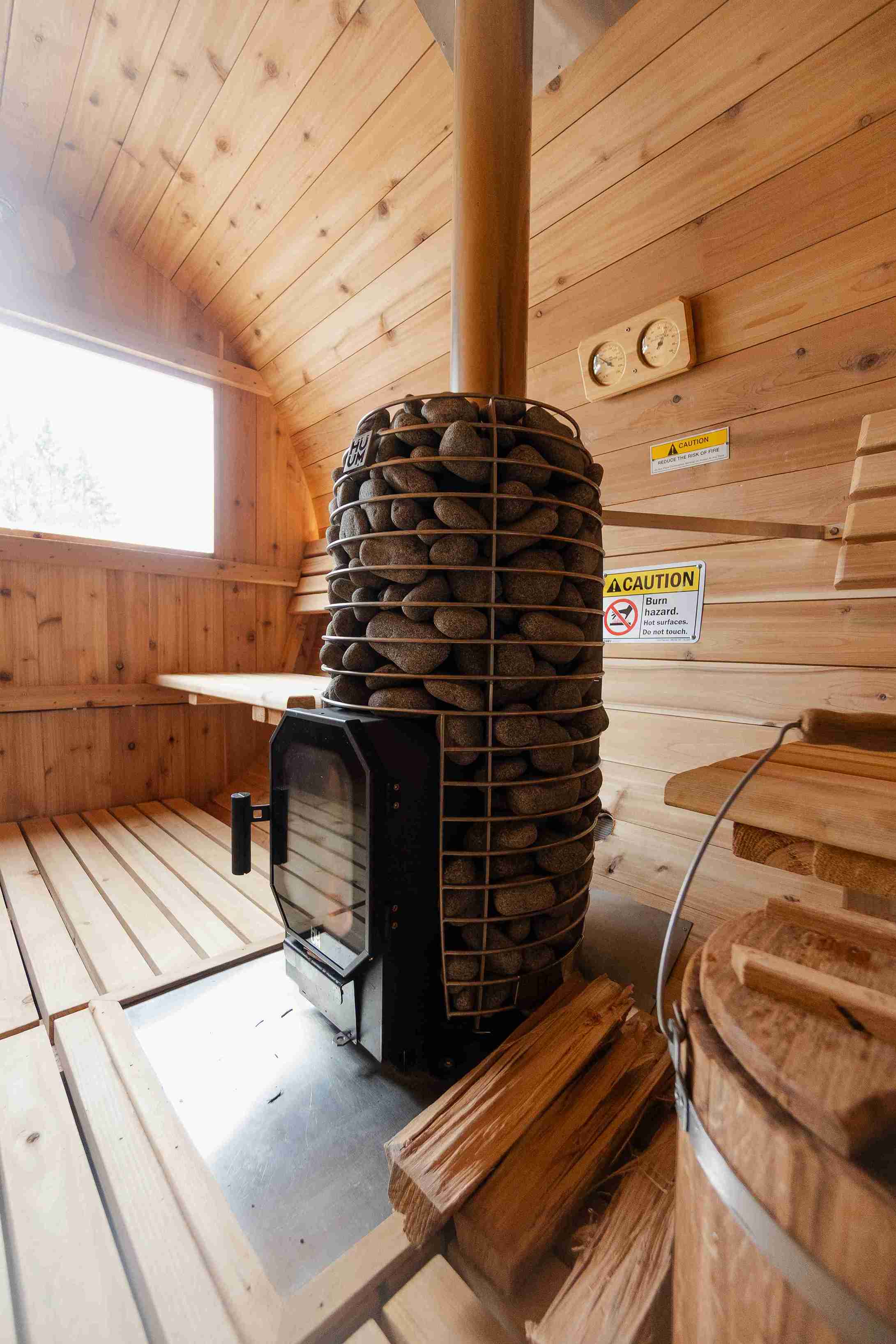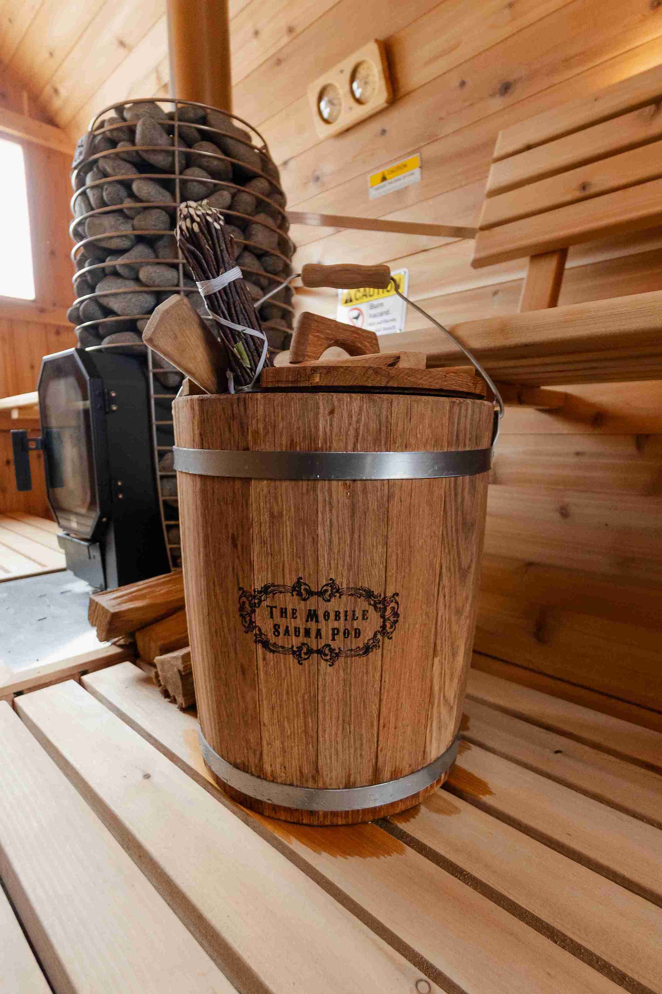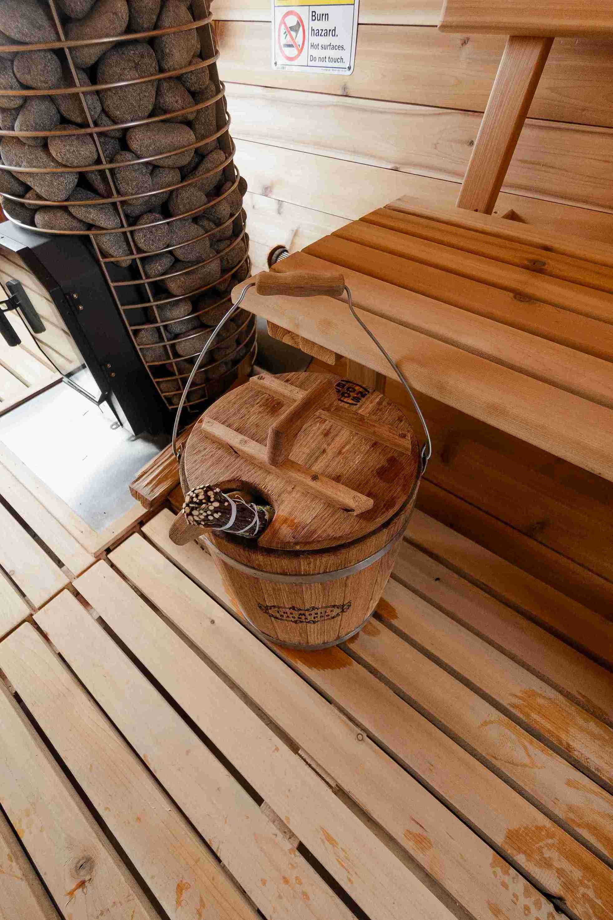 For your convenience, we offer additional options such as extra wood at $15 per bundle, and oak leaves for a traditional sauna experience at $20. We also sell eucalyptus seats and oils to enhance your sauna session with soothing aromas.