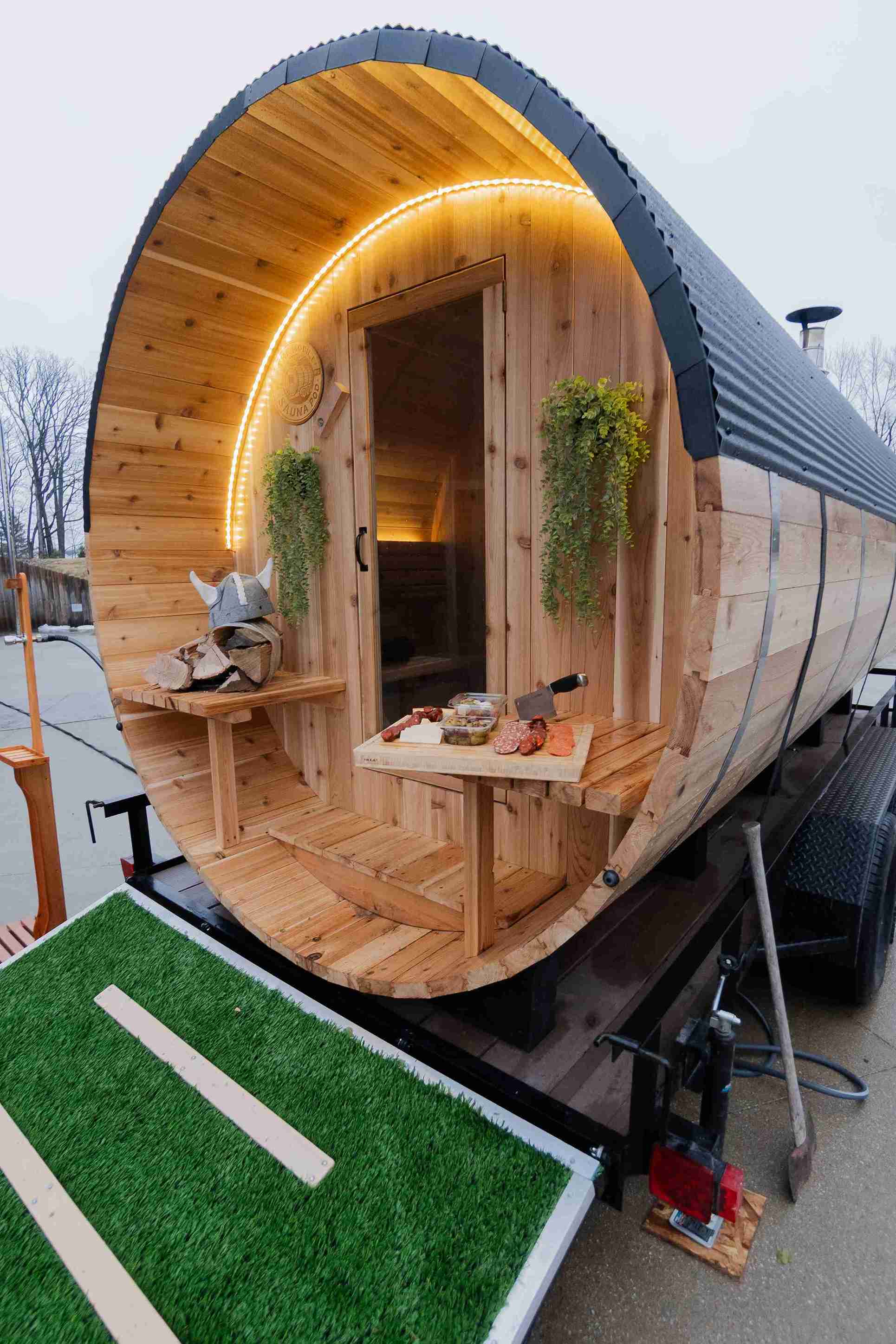 At The Mobile Sauna Pod, we bring the ultimate sauna experience to you! Our 16-foot Barrel Sauna comfortably accommodates 8-9 people max, featuring a cozy 4-foot changing room. Perfect for relaxation and wellness, our mobile sauna is delivered directly to your location anywhere in Northeast Ohio, providing a unique and luxurious experience for family gatherings, wellness groups, or special events.